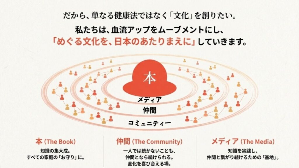 私は、この「血流アップ」の計り知れない価値を、日本中のすべての人に届けたいと本気で思っています。