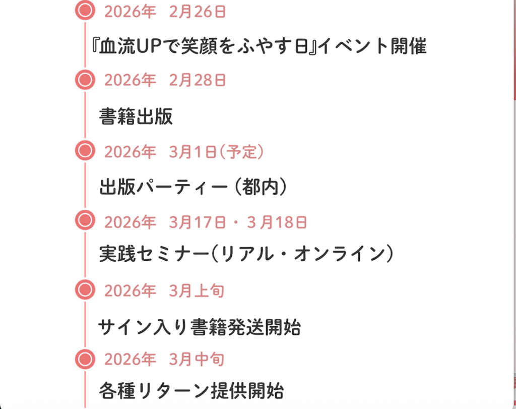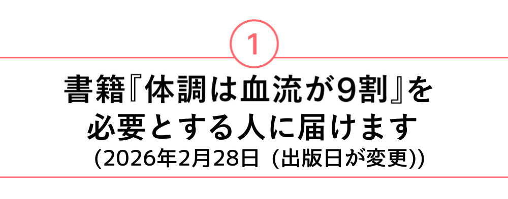 この書籍が、皆さんの生活の中に血流ケアを取り入れるきっかけとなり、各ご家庭やお家でも「一部屋に一冊」置いていただくことで、「やってみようかな?」と血流アップを始めるトリガーになれば、これほど嬉しいことはありません。