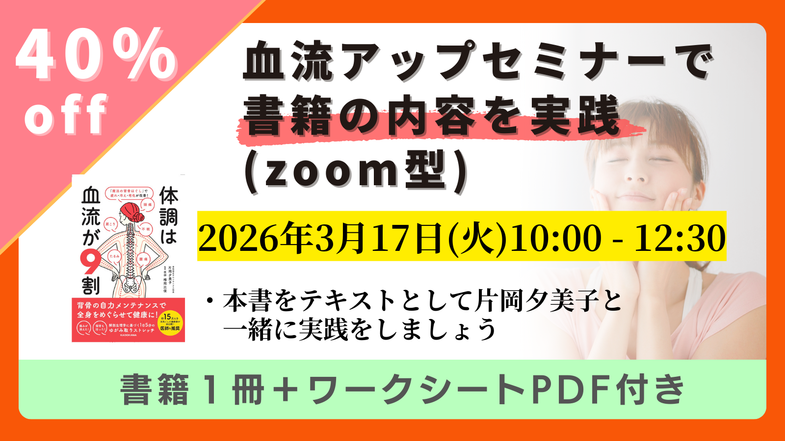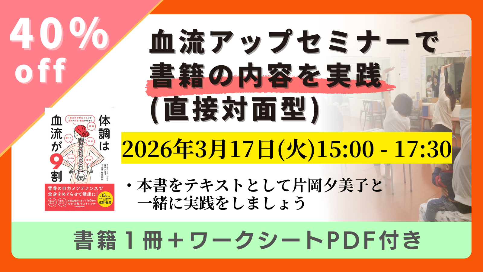 しかし、本を読んで「わかったつもり」になるだけでは、人生は変わりません。 一人で黙々と続けるのは難しくても、実際にプロのケアに触れ、仲間と一緒にからだを動かせば、「めぐりが良くなる心地よさ」をダイレクトに体感できます。