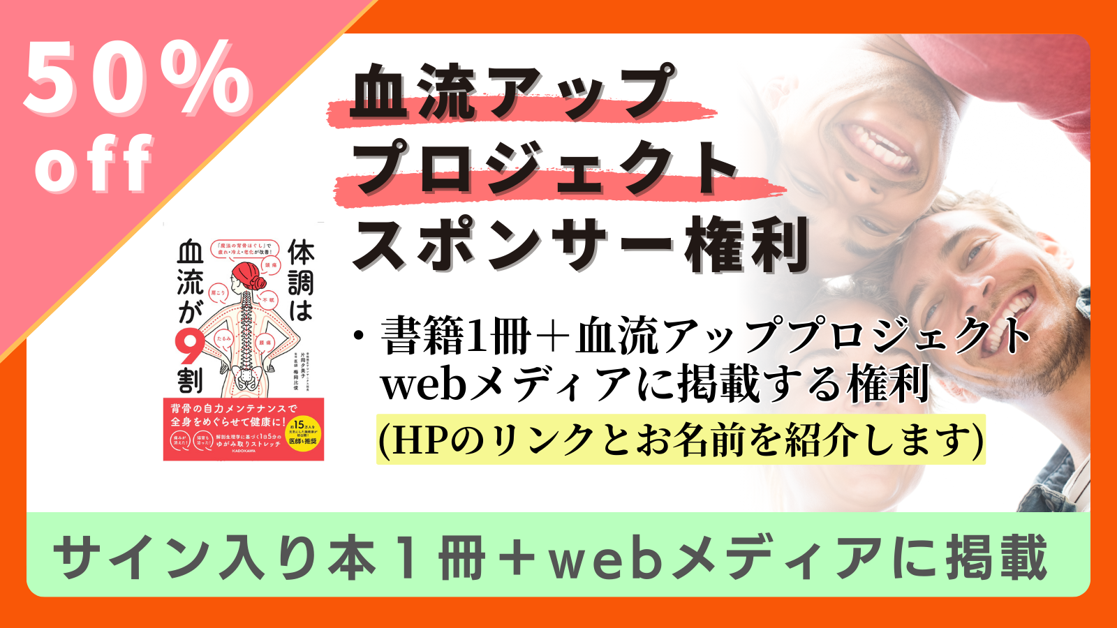 そのために、私は「血流アップ」というムーブメントを立ち上げ、体だけでなく、心も躍り、自然と血流アップにつながるようなわくわくする。そんな日本一の血流アップメディアを立ち上げることで、多くの人たちを巻き込んで、世の中に元気と笑顔の輪を広げていきたいと考えています。