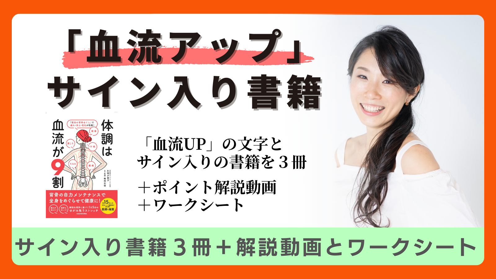 高価な施術や特別な道具がなくても、誰もが簡単に、ご自宅でセルフケアを実践できるように、という想いを込めて作りました。マッサージ・体操・質の良い睡眠の取り方・からだに優しい食事の選び方、そして心を整えるマインドのあり方まで、血流を良くするためのエッセンスをぎゅっと凝縮しています。
